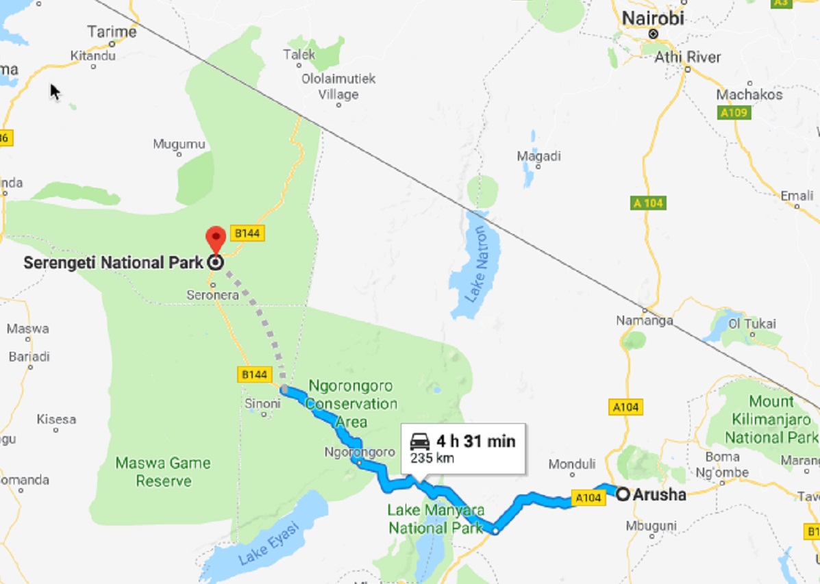 The recommended point of entry is Kilimanjaro International Airport which lies between the towns of Moshi and Arusha. The airport is located about 200 miles / 320 kilometers from the park’s southern entrance. There are a couple of international flight options such as KLM Royal Dutch Airlines (daily), Turkish Airlines, Kenya Airways and Ethiopian Airlines (a few of times per week). Kilimanjaro International Airport also has daily connections with Nairobi (NBO) in Kenya, which offers more international flight possibilities. Additional airlines such as British Airways, Emirates and others fly into Tanzania’s capital Dar es Salaam (DAR). Please note that arriving at Dar es Salaam may require an extra overnight and a domestic flight on a small regional airline with luggage restrictions.