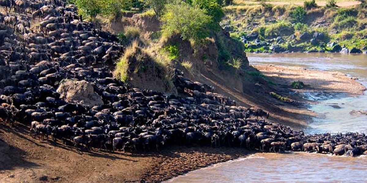 In June and July, the great crossing of the Serengeti happens in earnest. Wildebeest cross over the Grumeti River and eventually the Mara River to reach Kenya.